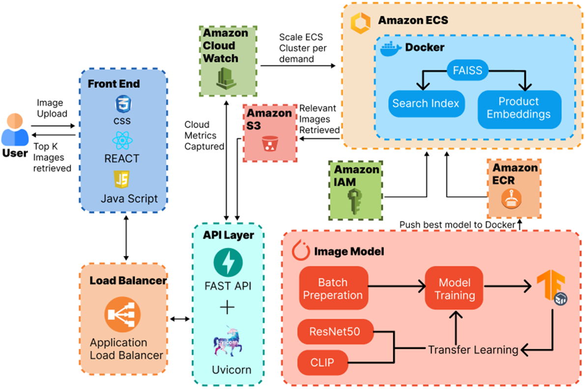 PRISM is a scalable image-to-image search system designed for e-commerce, enabling users to find visually similar products using a single uploaded image.